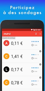 Chez AttaPoll, nous vous donnons le contrôle total sur les types de sondages auxquels vous participez. Avant de commencer une enquête, nous vous informons clairement de sa durée et du montant de rémunération associé. Vous préférez des sondages courts ? Aucun souci. Vous recherchez des sondages à forte rémunération ? Nous en avons aussi. De plus, chaque enquête est évaluée avec un système d’étoiles, vous permettant de savoir si vous avez de bonnes chances de la compléter avec succès. Nous vous recommandons donc de sélectionner en priorité les enquêtes avec le plus d’étoiles pour maximiser vos gains et votre efficacité. Avec AttaPoll, vous avez la flexibilité de choisir les sondages qui correspondent le mieux à vos préférences et à votre emploi du temps.