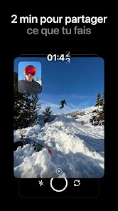 • La caméra sur BeReal est vraiment différente de ce dont tu as sûrement l’habitude, elle prend à la fois ce qu’il y a devant toi et un selfie au même moment en super haute qualité.